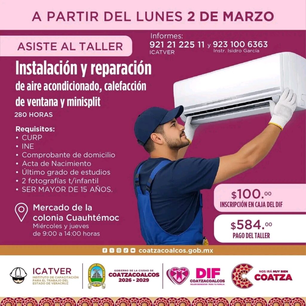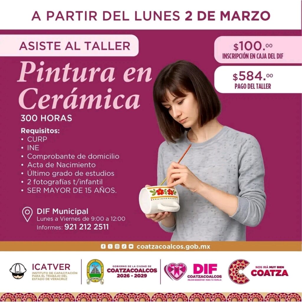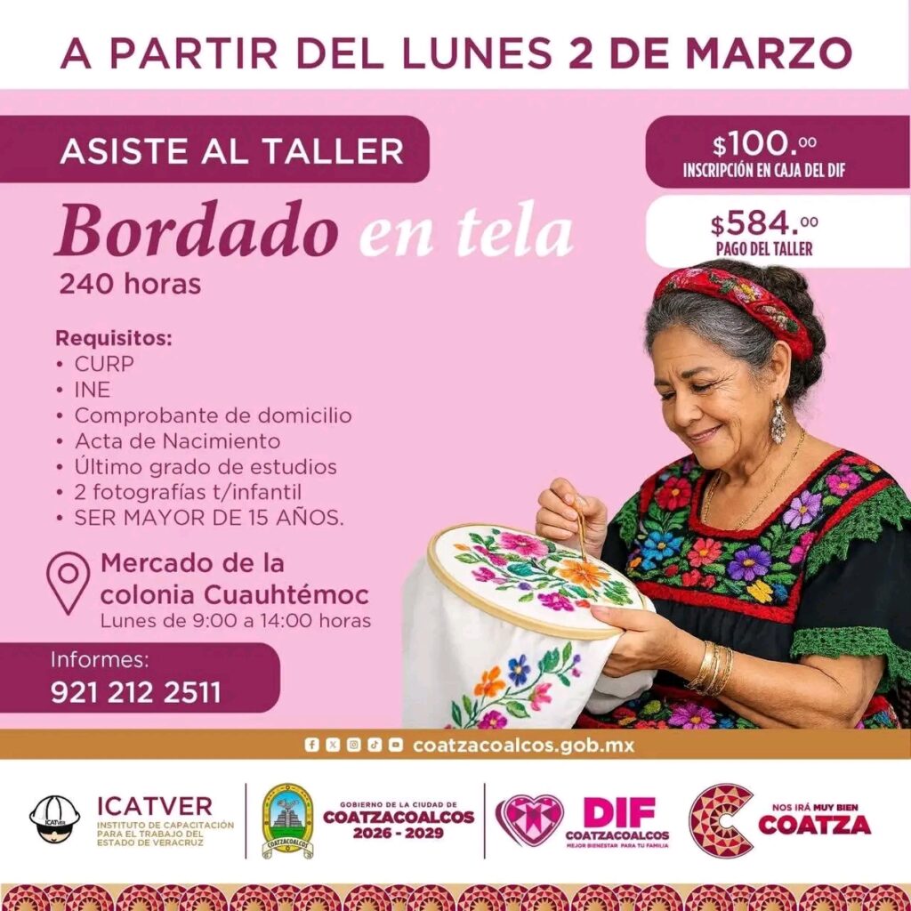 Coatzacoalcos, Ver.- El Sistema para el Desarrollo Integral de la Familia (DIF) Municipal de Coatzacoalcos, que preside Sonia Marie Salvador Goraieb, en coordinación con el Instituto de Capacitación para el Trabajo del Estado de Veracruz (ICATVER), informa que se encuentran abiertas las inscripciones para talleres de capacitación dirigidos a la población en general.