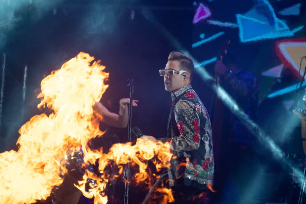 El grupo, liderado por Emir Pabón, demostró su carisma y talento, combinando ritmos colombianos con acordeón, piano, congas, güiro y timbales, creando un espectáculo visual con sus bellas bailarinas y las dinámicas coreografías que presentaron en cada canción.