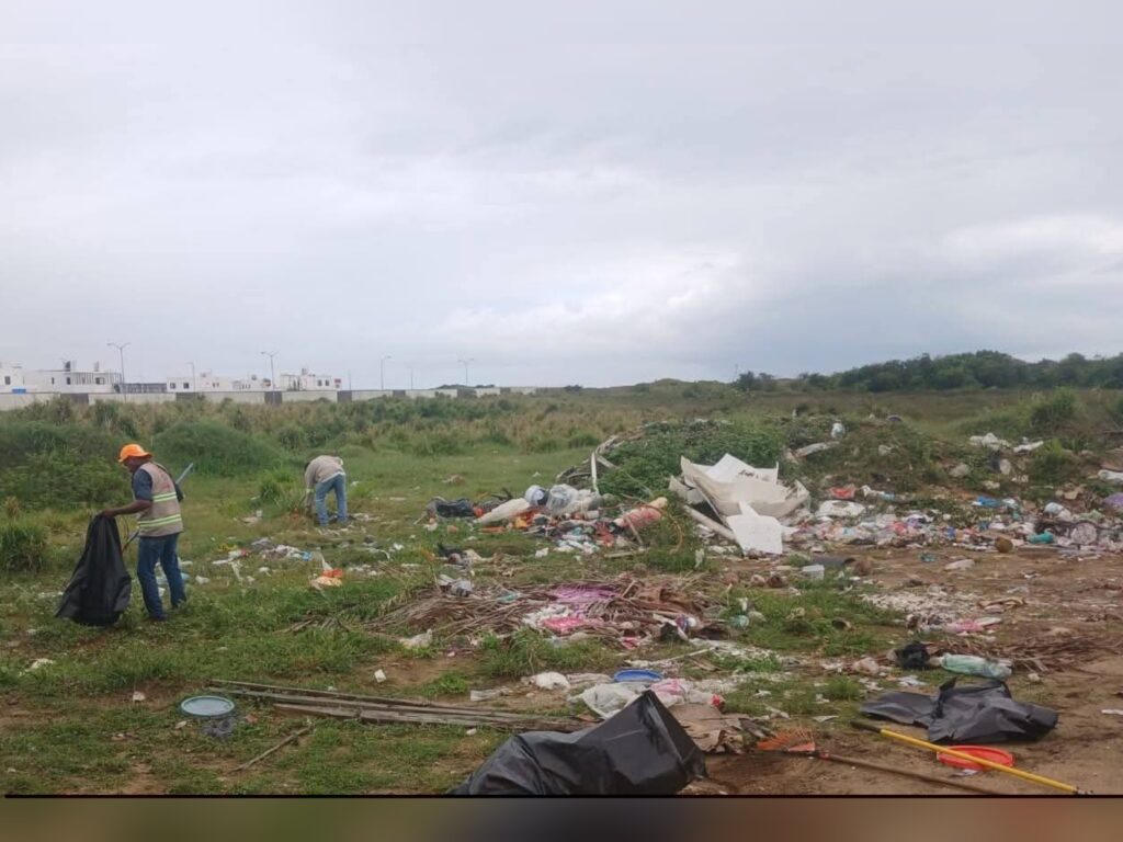En este punto, trabajadores municipales realizan el retiro de toneladas de desechos acumulados en espacios no autorizados, los cuales representan un riesgo sanitario para los residentes de la zona.